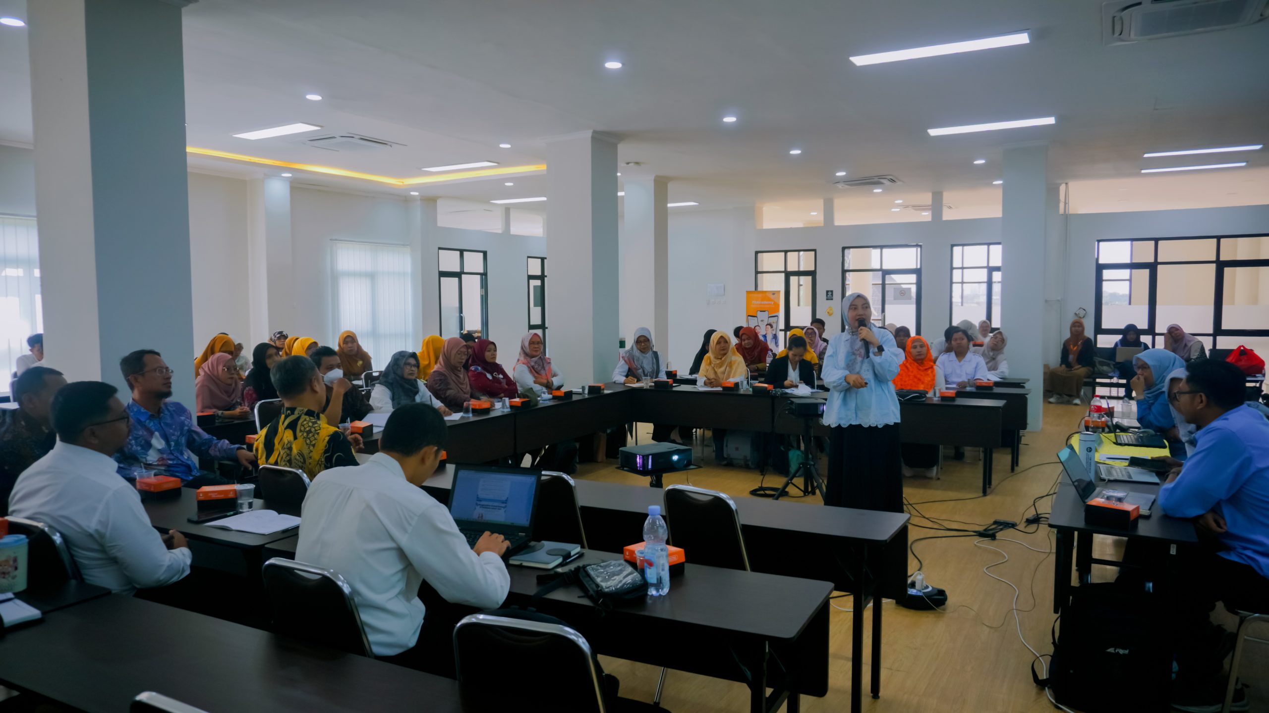Suasana workshop berlangsung interaktif dan penuh antusiasme. Guru-guru saling berdiskusi, berbagi praktik terbaik, hingga menyusun perangkat ajar yang siap langsung digunakan. Energi positif ini menjadi bukti bahwa kolaborasi adalah kunci perubahan pendidikan yang berkualitas.